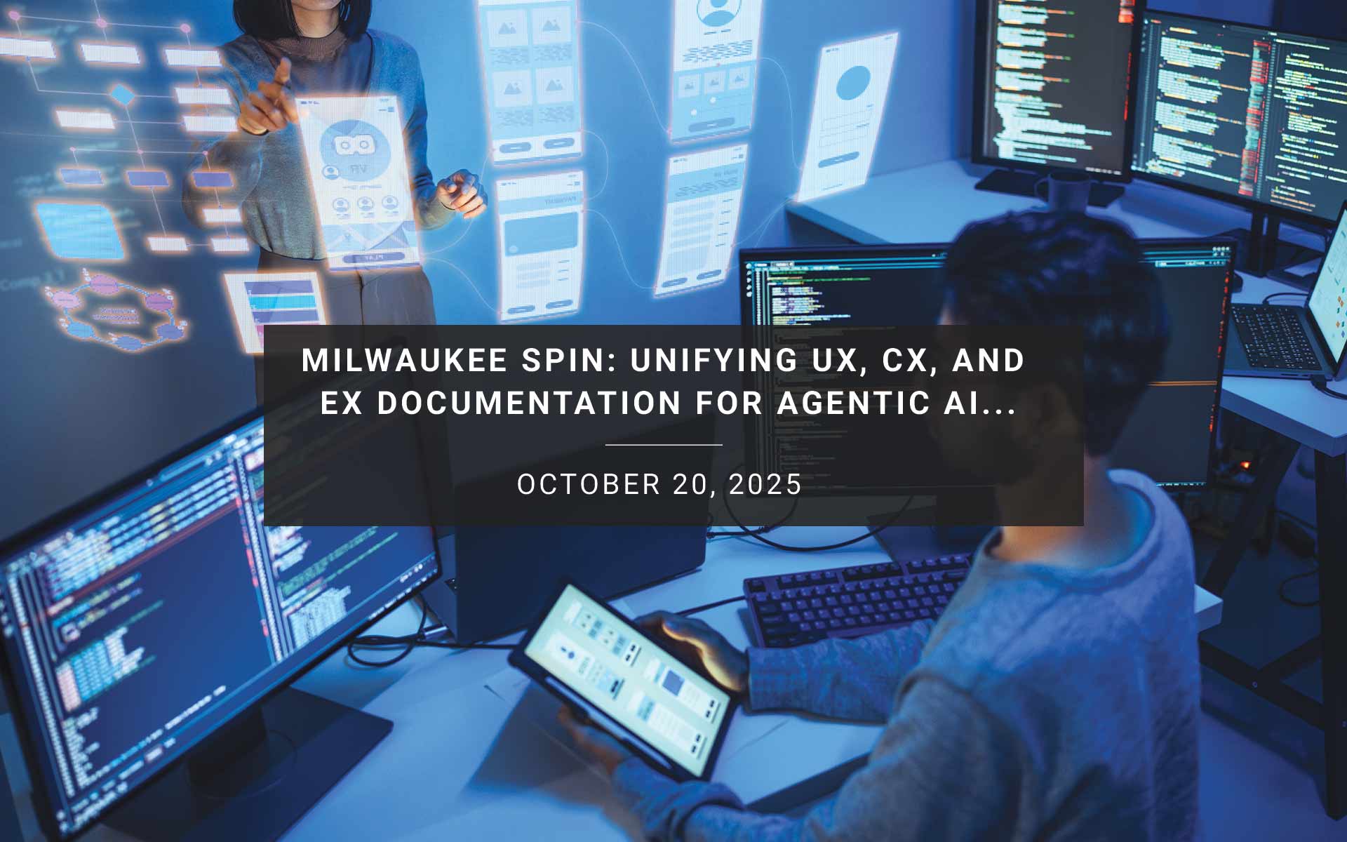 Oct 20 5:30 PM - 7:45 PM Milwaukee SPIN: Unifying UX, CX, and EX Documentation for Agentic AI in Copilot Studio | 10/20/2025 Milliman's Michigan Room 17335 Golf Pkwy Ste 100, Brookfield Event Details Get Directions